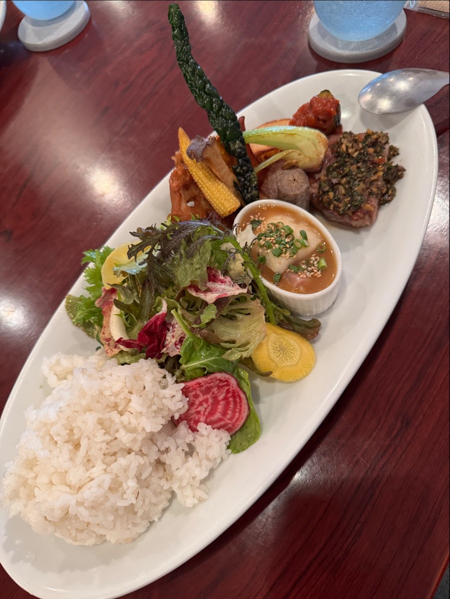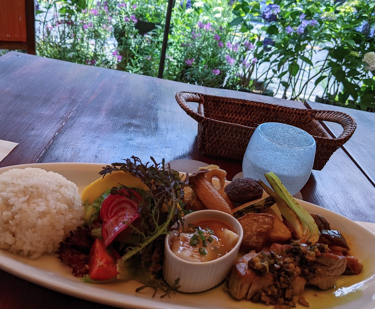 Upon stepping inside, you’ll be greeted by a warm and cozy ambiance, where dark wood and bamboo create an intimate, southern Asian resort feel. While the space may be smaller than expected, generous spacing between tables ensures that each guest has a comfortable experience, making it perfect for a relaxing meal after exploring the beautiful surroundings of Kamakura.
